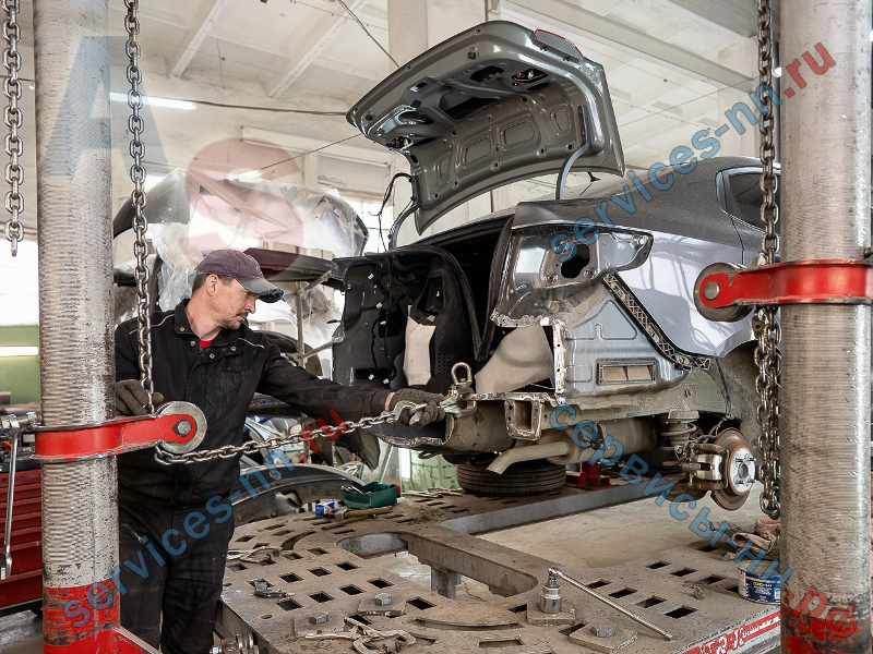 В кузовном цехе выполняют работы любой сложности, от удаления вмятин до восстановления геометрии после серьезных ДТП.