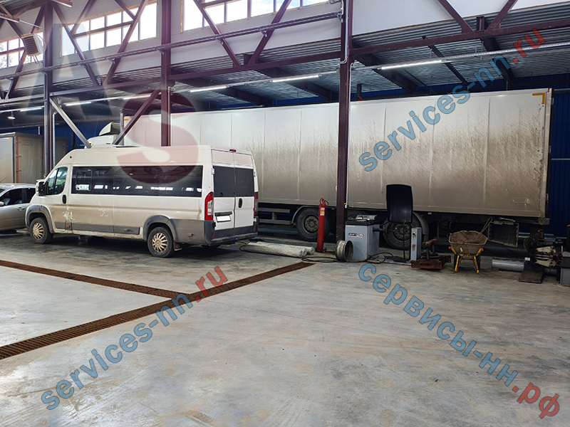 - 7 смотровых ям для коммерческого транспорт, грузовых автомобилей и автобусов ПАЗ